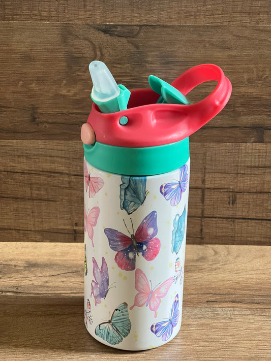 Kids Tumblers Sippy Cups - Flip Top - 12 oz - Butterflies - Sea Turtles - Safari and more